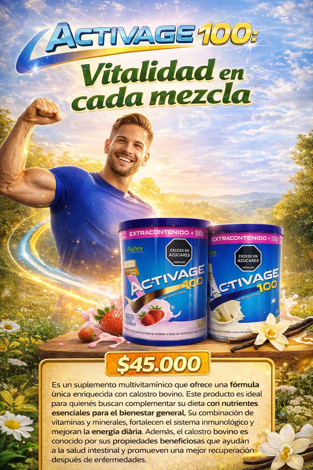 Suplemento multivitamínico que ofrece una fórmula única enriquecida con Calostro bovino. Este producto es ideal para quienes buscan complementar su dieta con nutrientes.